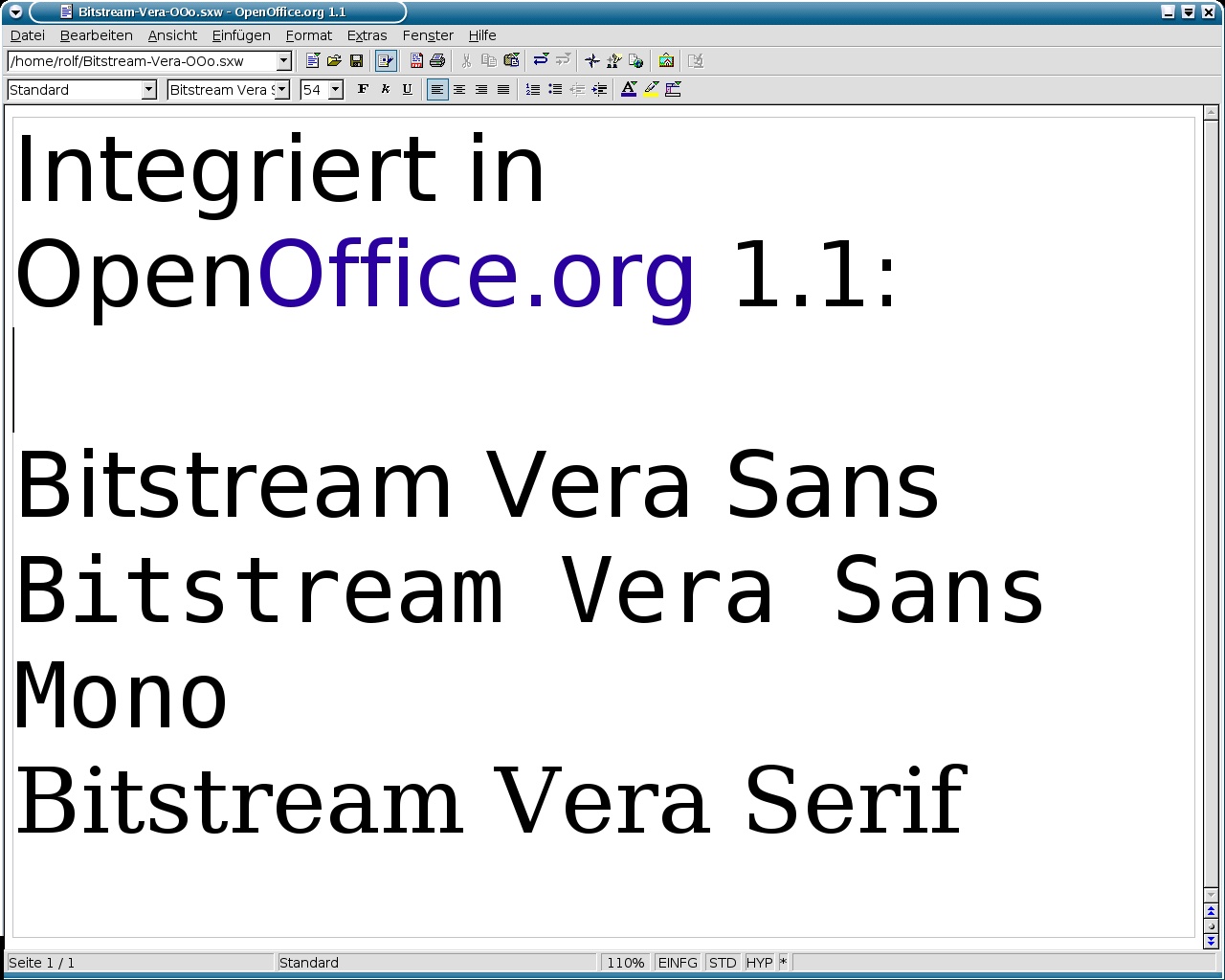 Screenshots - OpenOffice.org 1.1 - Bitstream-Vera -- eine mitgelieferte Schriftart